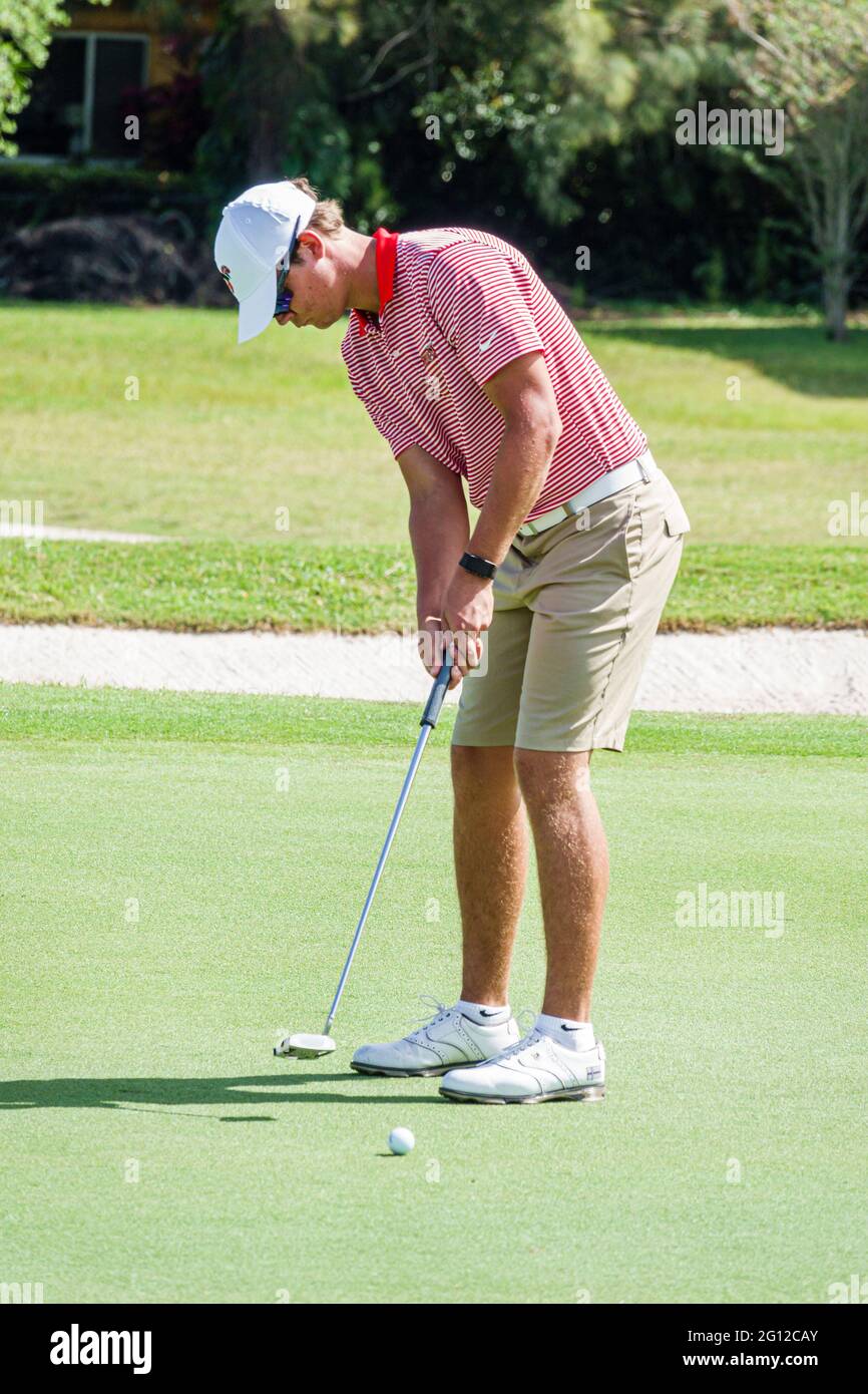 Miami Beach Florida Club De Campo De Golf Normandy Shores Torneo Universitario Estudiantes Educacion Alumnos Jugadores Ncaa Division Ii 2 Puting Pla Fotografia De Stock Alamy